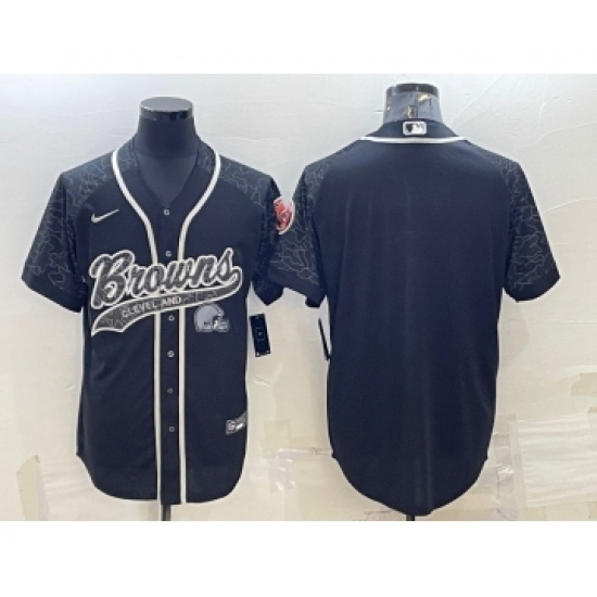 >Men's Cleveland Browns Blank Black Reflective With Patch Cool Base Stitched Baseball Jersey