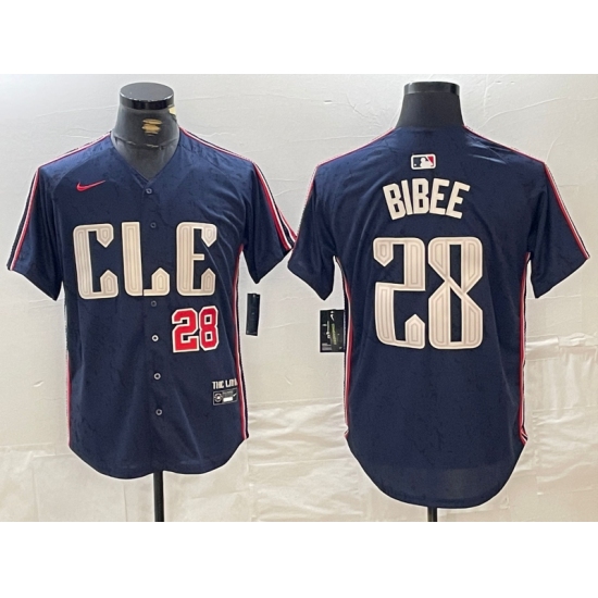 Men's Cleveland Guardians #28 Tanner Bibee Number Navy 2024 City Connect Limited Stitched Jersey