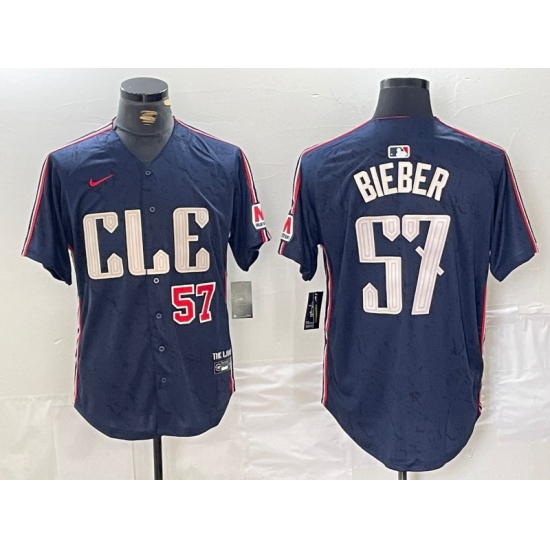 Men's Nike Cleveland Indians #57 Shane Bieber Navy Alternate Stitched Baseball Jersey
