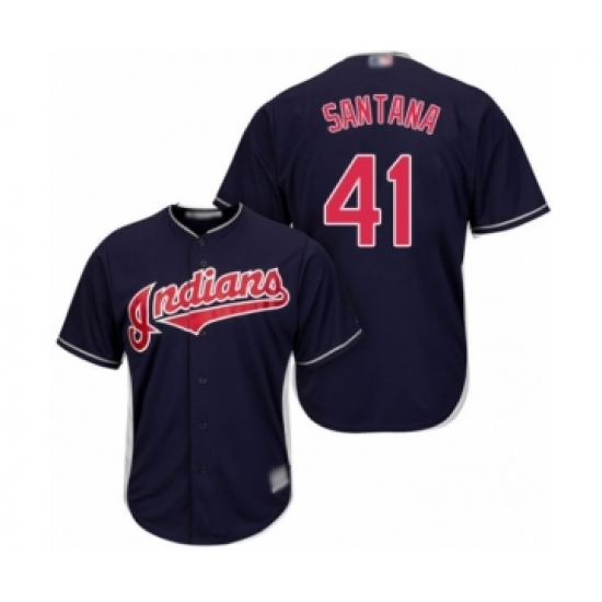 Men's Cleveland Indians #41 Carlos Santana Replica Navy Blue Alternate 1 Cool Base Baseball Jersey