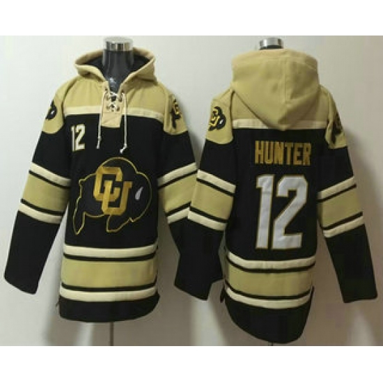 >Men's Colorado Buffaloes #12 Travis Hunter Black Ageless Must Have Lace Up Pullover Hoodie