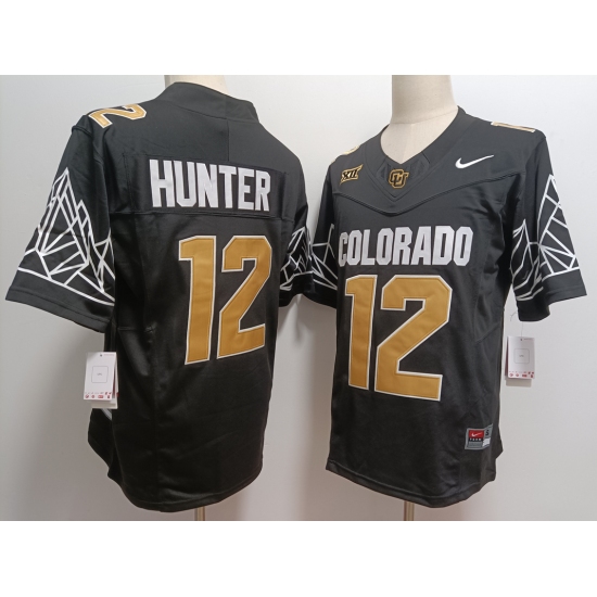 Men's Colorado Buffaloes #12 Travis Hunter Black Gold With XII Patch FUSE Vapor Stitched Jersey