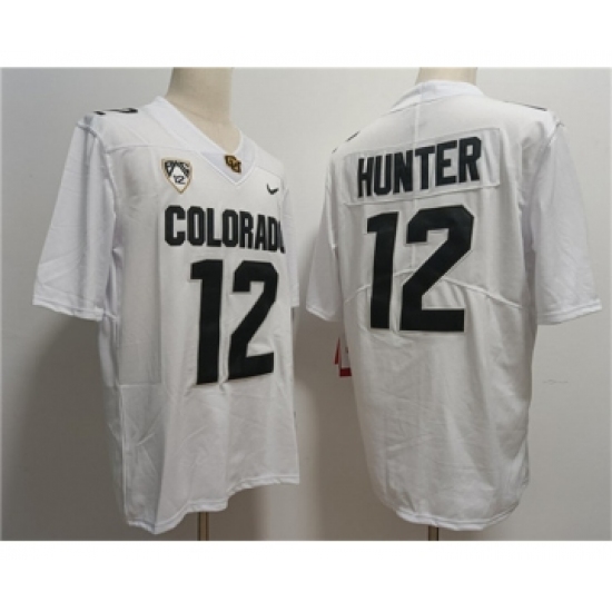 Men's Colorado Buffaloes #12 Travis Hunter White With PAC-12 Patch Stitched Football Jersey