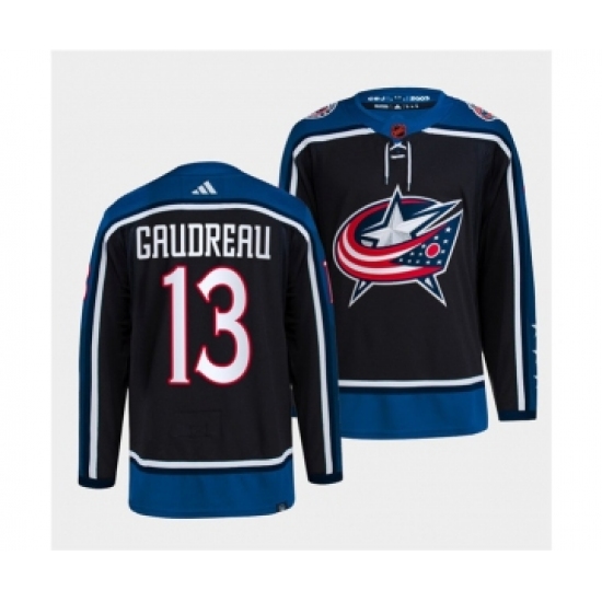 Men's Columbus Blue Jackets #13 Johnny Gaudreau Navy 2022 Reverse Retro Stitched Jersey