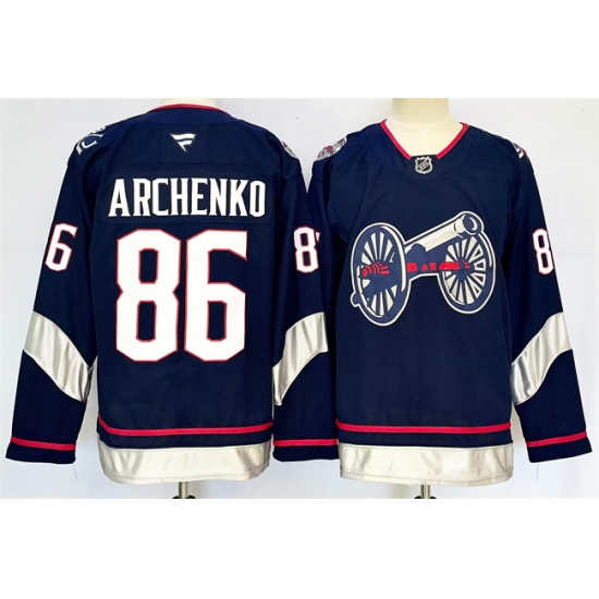 >Men's Columbus Blue Jackets #86 Kirill Marchenko Navy 2024-25 With C Stitched Hockey Jersey
