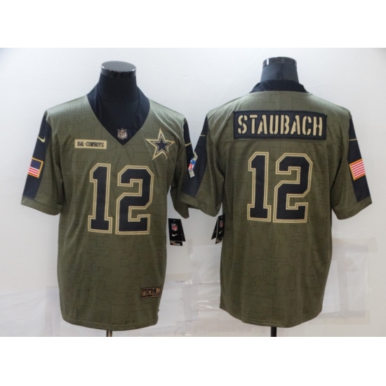 Men's Dallas Cowboys #12 Roger Staubach Olive Gold 2021 Salute To Service Limited Player Jersey