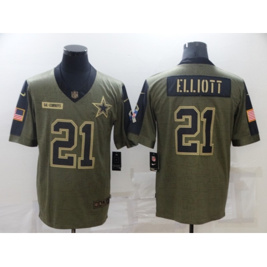 >Men's Dallas Cowboys #21 Ezekiel Elliott Nike Olive 2021 Salute To Service Limited Player Jersey