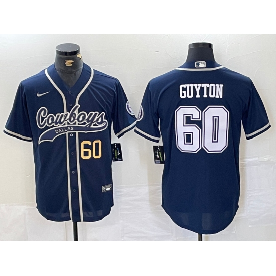 >Men's Dallas Cowboys #60 Tyler Guyton Navy Cool Base Stitched Baseball Jerseys