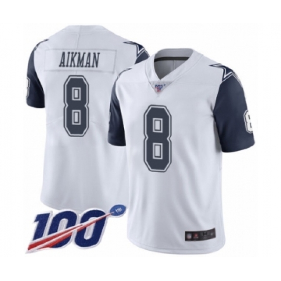 >Men's Dallas Cowboys #8 Troy Aikman Limited White Rush Vapor Untouchable 100th Season Football Jersey