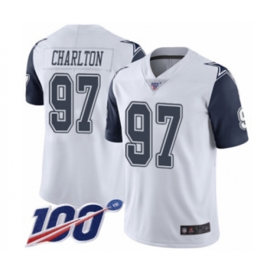 Men's Dallas Cowboys #97 Taco Charlton Limited White Rush Vapor Untouchable 100th Season Football Jersey
