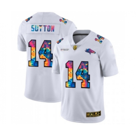 Men's Denver Broncos #14 Courtland Sutton White 2020 Crucial Catch Limited Stitched Jersey