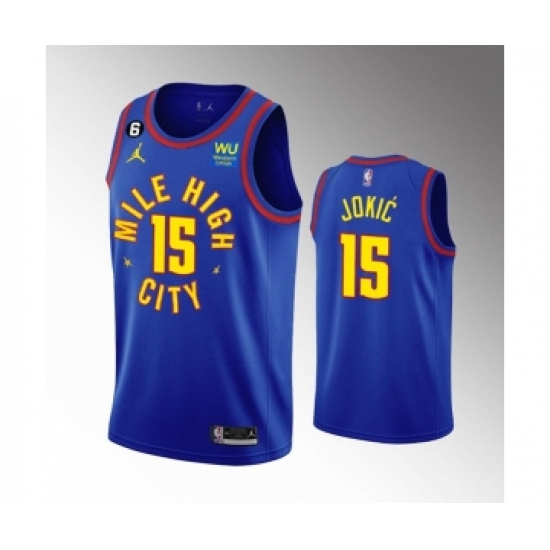 Men's Denver Nuggets #15 Nikola Jokic Blue 2022-23 statement edition Stitched Jersey