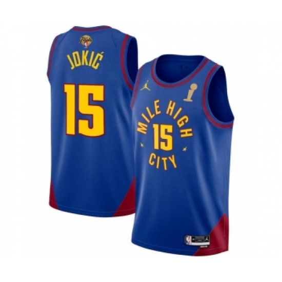 Men's Denver Nuggets #15 Nikola Jokic Blue 2023 Finals Champions Statement Edition Stitched Basketball Jersey