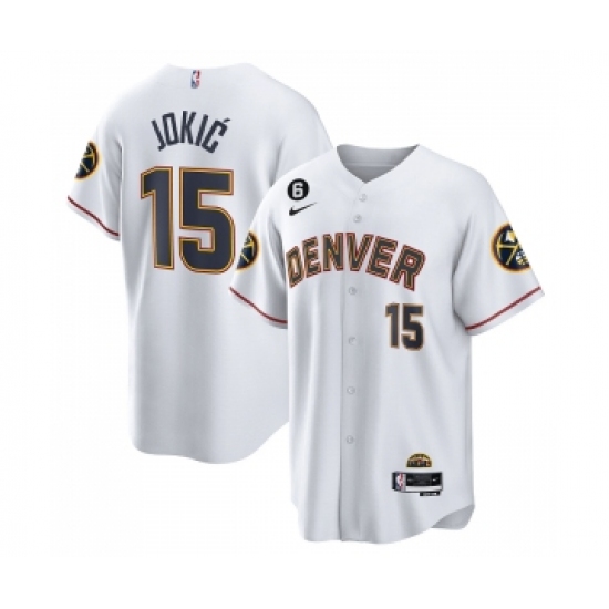 Men's Denver Nuggets #15 Nikola Jokic White With No.6 Cool Base Stitched Jersey
