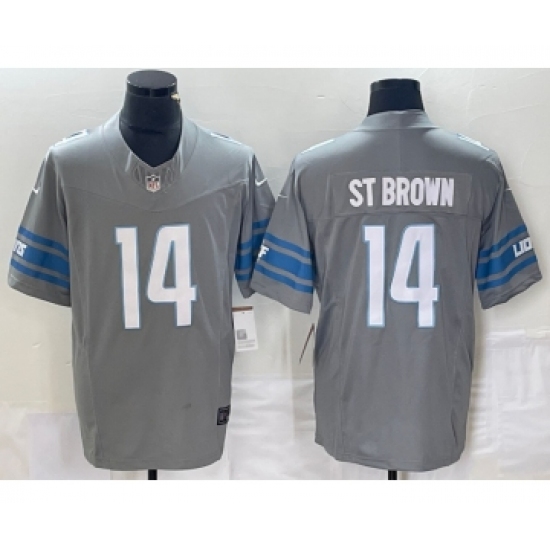 Men's Detroit Lions #14 Amon Ra St Brown Grey 2023 FUSE Vapor Limited Stitched Jersey
