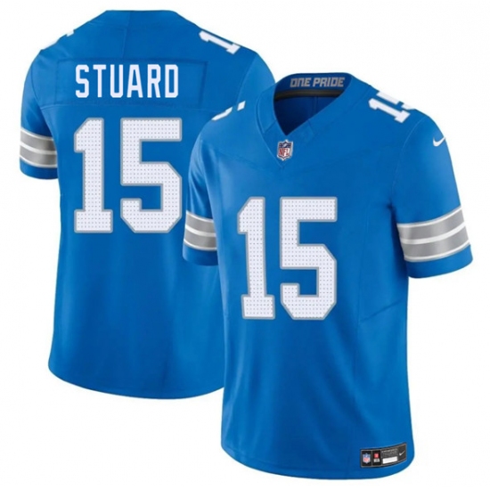 >Men's Detroit Lions #15 Grant Stuard Blue 2025 F.U.S.E. Vapor Limited Football Stitched Jersey