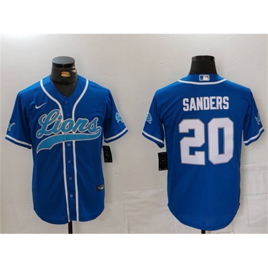 Men's Detroit Lions #20 Barry Sanders Blue Cool Base Stitched Baseball Jersey