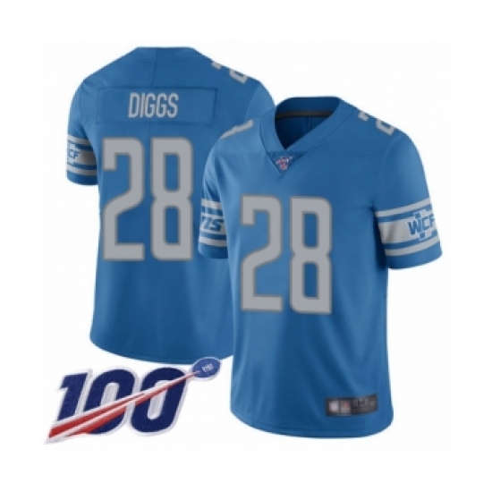 Men's Detroit Lions #28 Quandre Diggs Blue Team Color Vapor Untouchable Limited Player 100th Season Football Jersey