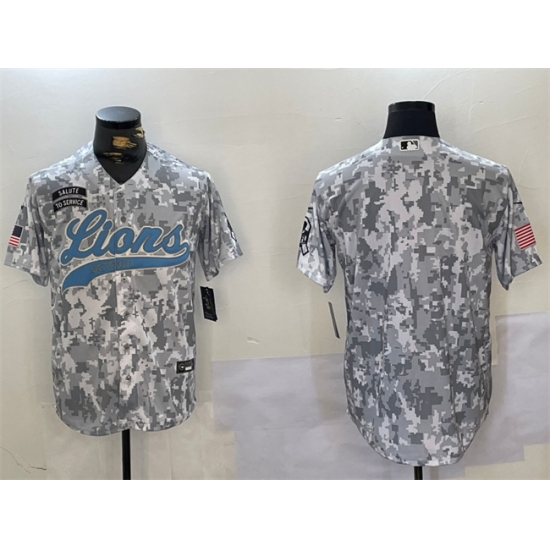 >Men's Detroit Lions Blank 2024 Arctic Camo Salute To Service Stitched Baseball Jersey