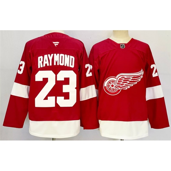 >Men's Detroit Red Wings #23 Lucas Raymond Red 2024-25 Home Stitched Jersey