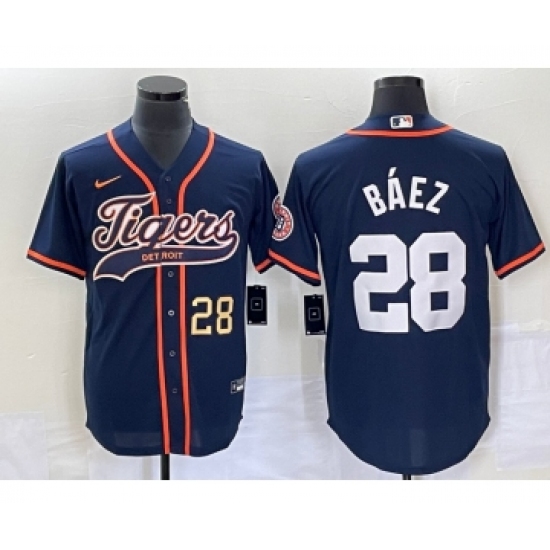 Men's Detroit Tigers #28 Javier Baez Number Navy Blue Cool Base Stitched Baseball Jersey