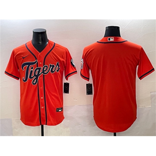 Men's Detroit Tigers Orange Team Big Logo Cool Base Stitched Baseball Jersey
