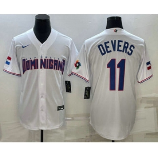 Men's Dominican Republic Baseball #11 Rafael Devers 2023 White World Baseball Classic Stitched Jerseys