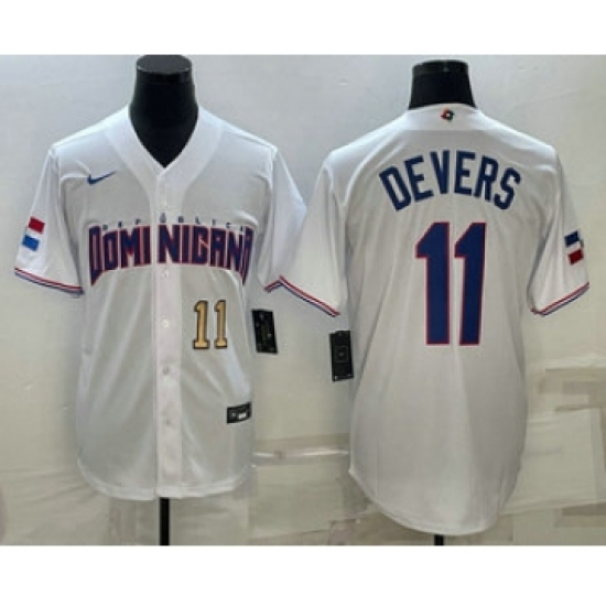 Men's Dominican Republic Baseball #11 Rafael Devers Number 2023 White World Baseball Classic Stitched Jerseys