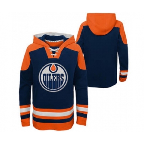 >Men's Edmonton Oilers Blank Navy Ageless Must-Have Lace-Up Pullover Hockey Hoodie