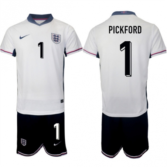 >Men's England #1 Jordan Pickford 2024-25 White Home Soccer Jersey Suit