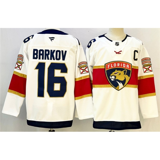 Men's Florida Panthers #16 Aleksander Barkov White 2024-25 Home With C Stitched Hockey Jersey
