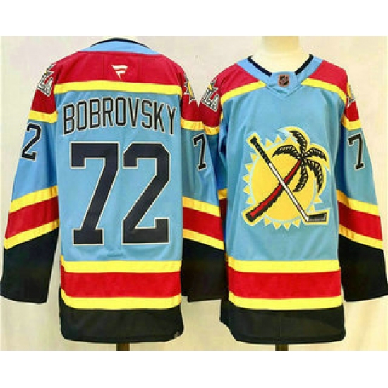 >Men's Florida Panthers #72 Sergei Bobrovsky Blue 2024 Reverse Retro Stitched Jersey