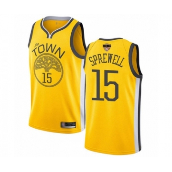 >Men's Golden State Warriors #15 Latrell Sprewell Yellow Swingman 2019 Basketball Finals Bound Jersey - Earned Edition