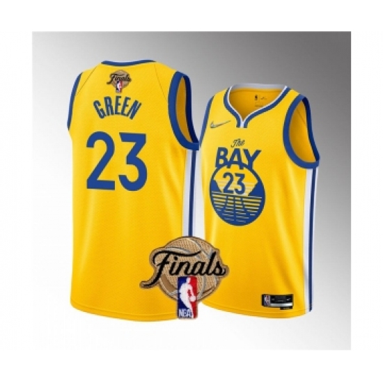 >Men's Golden State Warriors #23 Draymond Green Yellow 2022 Finals Stitched Jersey