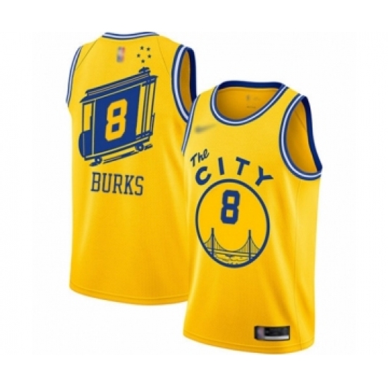 >Men's Golden State Warriors #8 Alec Burks Authentic Gold Hardwood Classics Basketball Jersey - The City Classic Edition