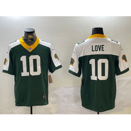 Men's Green Bay Packers #10 Jordan Love Green White 2023 FUSE Home Vapor Limited Stitched Jersey