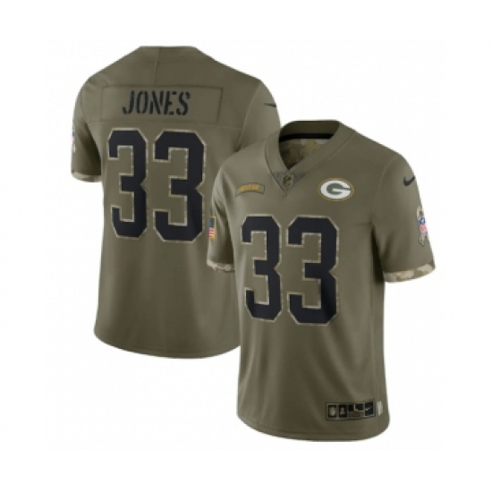 Men's Green Bay Packers #33 Aaron Jones 2022 Olive Salute To Service Limited Stitched Jersey