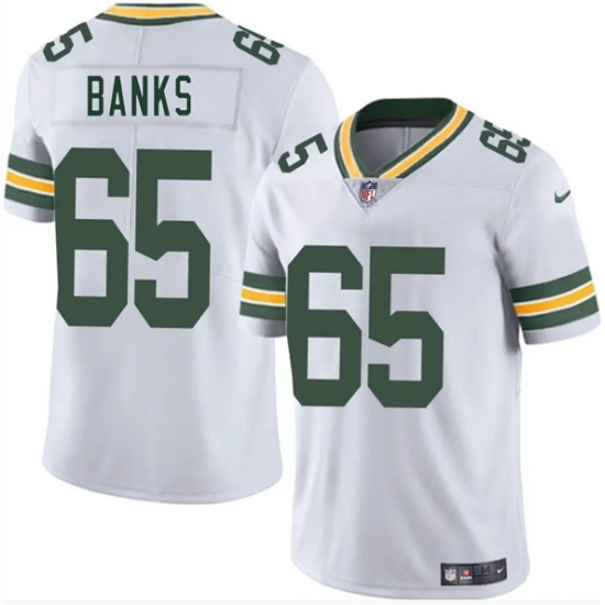 Men's Green Bay Packers #65 Aaron Banks White 2025 Vapor Untouchable Limited Football Stitched Jersey