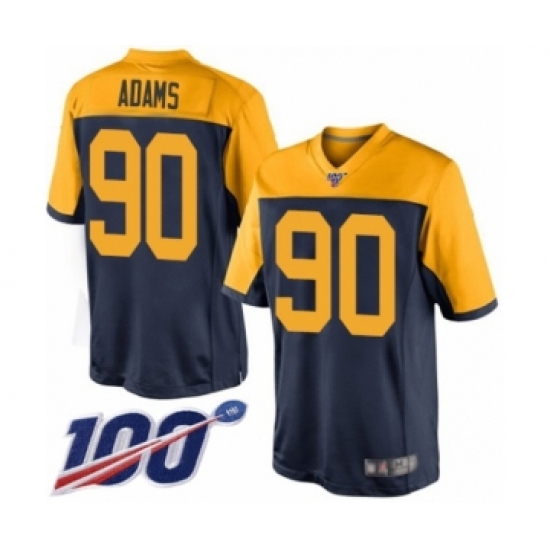 >Men's Green Bay Packers #90 Montravius Adams Limited Navy Blue Alternate 100th Season Football Jersey