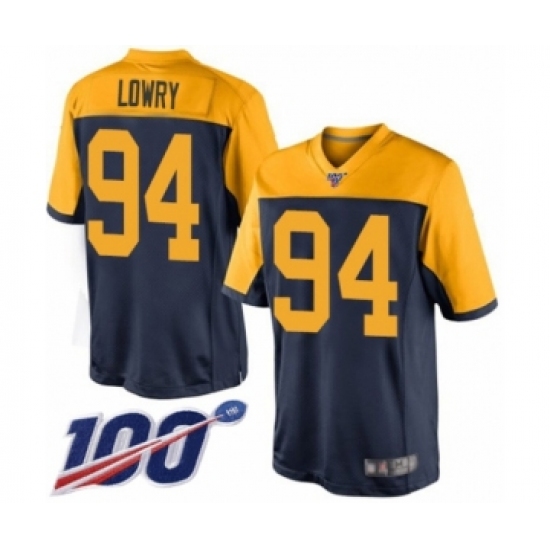 Men's Green Bay Packers #94 Dean Lowry Limited Navy Blue Alternate 100th Season Football Jersey