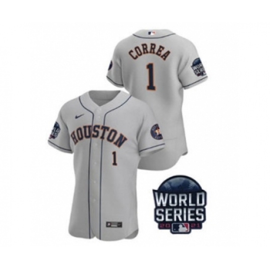 Men's Houston Astros #1 Carlos Correa 2021 Gray World Series Flex Base Stitched Baseball Jersey