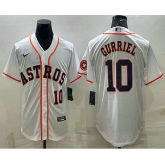 Men's Houston Astros #10 Yuli Gurriel Number White With Patch Stitched MLB Cool Base Nike Jersey