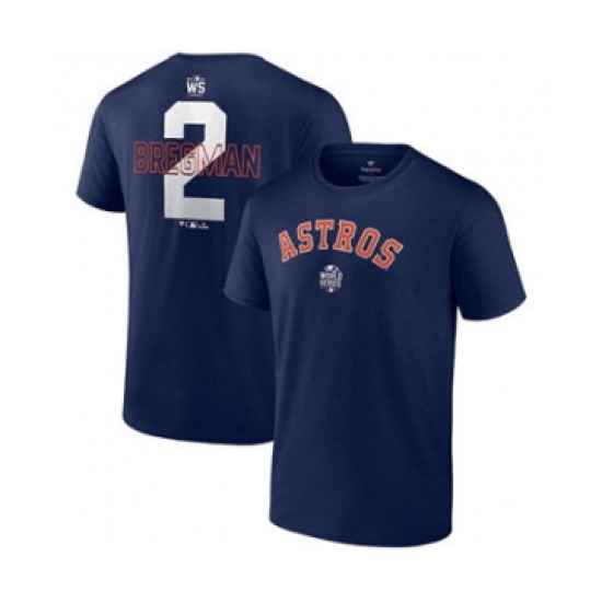>Men's Houston Astros #2 Alex Bregman 2021 Navy World Series Bound Closer Name & Number Baseball T-Shirt