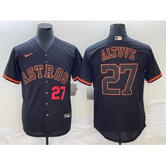 Men's Houston Astros #27 Jose Altuve Number Lights Out Black Fashion Stitched MLB Cool Base Nike Jersey