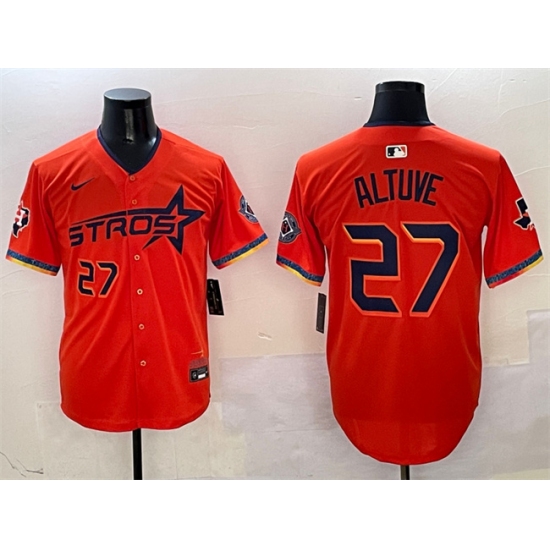Men's Houston Astros #27 Jose Altuve Orange 2025 City Connect With Texas Limited Stitched Baseball Jersey