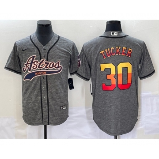 Men's Houston Astros #30 Kyle Tucker Grey Gridiron Cool Base Stitched Baseball Jersey