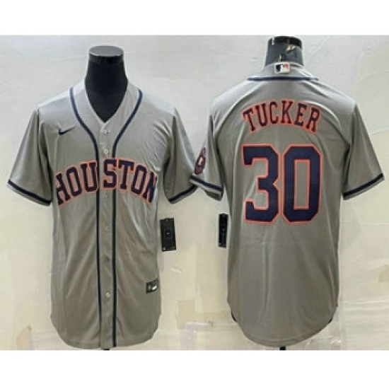 Men's Houston Astros #30 Kyle Tucker Grey With Patch Stitched MLB Cool Base Nike Jersey