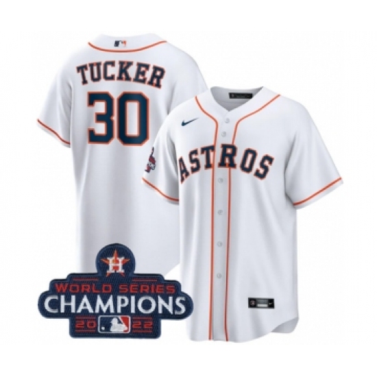 Men's Houston Astros #30 Kyle Tucker White 2022 World Series Champions Home Stitched Baseball Jersey