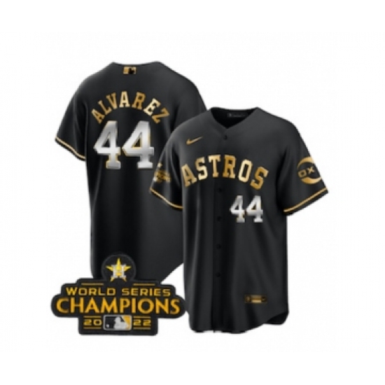 Men's Houston Astros #44 Yordan Alvarez Black Gold 2022 World Serise Champions Stitched Baseball Jersey