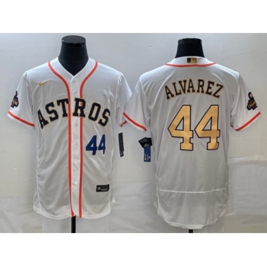 Men's Houston Astros #44 Yordan Alvarez 2023 White Gold World Serise Champions Flex Base Stitched Jersey